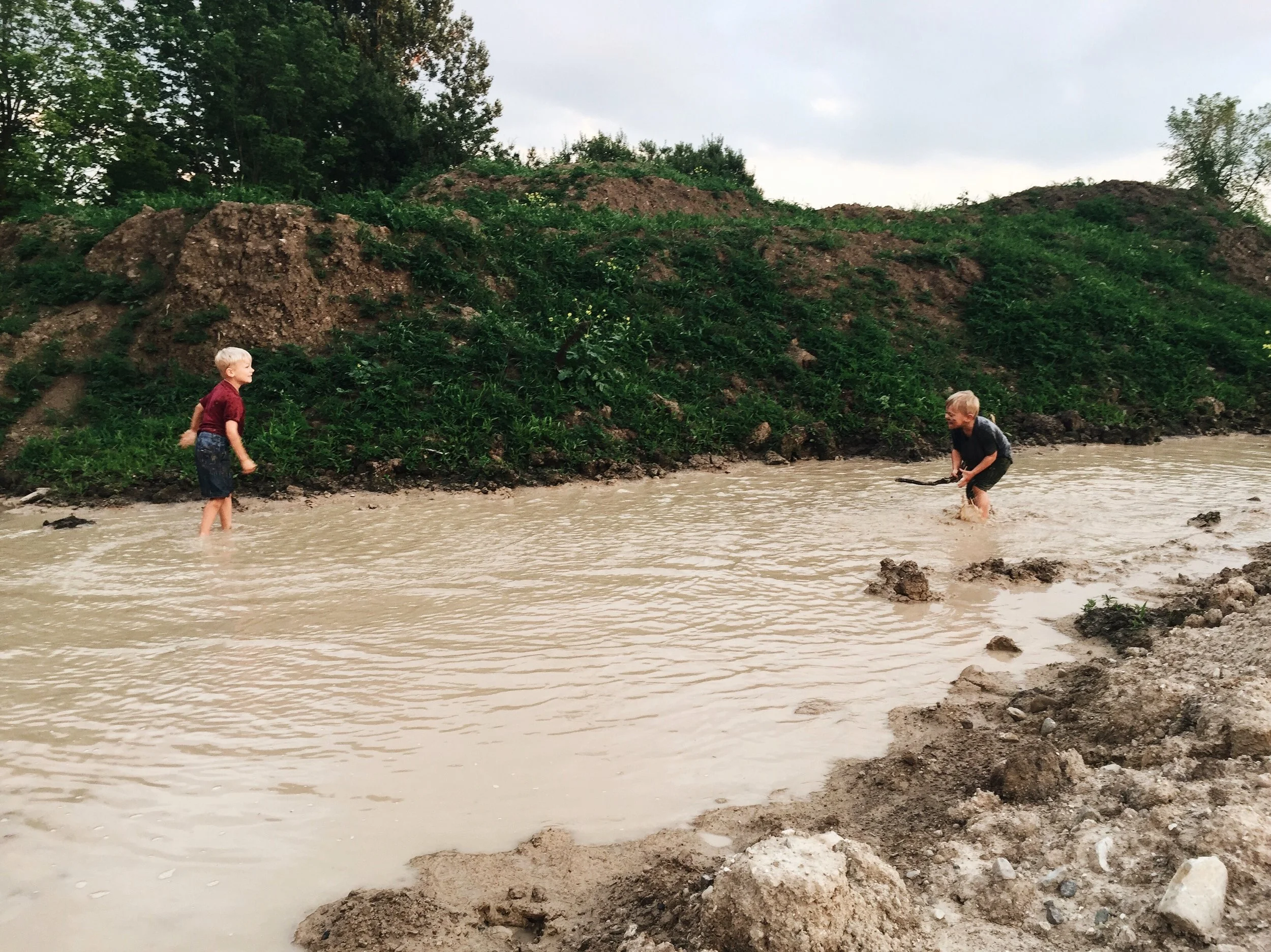 Once the walls begun going up, it was like a "AH HAAAA" moment, we no longer were looking at our renderings on a piece of paper but rather physically walking through the rooms we meticulously designed. It felt very familiar, we knew this house from top to bottom, we had spent so many of our nights examining every area, and well, surprise... we're still doing the same.The boys run around chasing each other throughout the main level going from room to room, oddly it feels like they are right at home and I can already see our house coming to life!When the boys aren't running around the house or jumping through the huge mud puddle out back, you can find them here building their little tractor shed out of all the scraps ;)In the above images, I'm standing in the two second floor end bedrooms (there are 3 bedrooms up here in total). The boys will be sharing the second bedroom which is closest to the staircase landing. I figured that maybe if they were closer to the laundry chute, they would be more willing to throw their dirty clothing down it instead of on the floor!? We'll see...