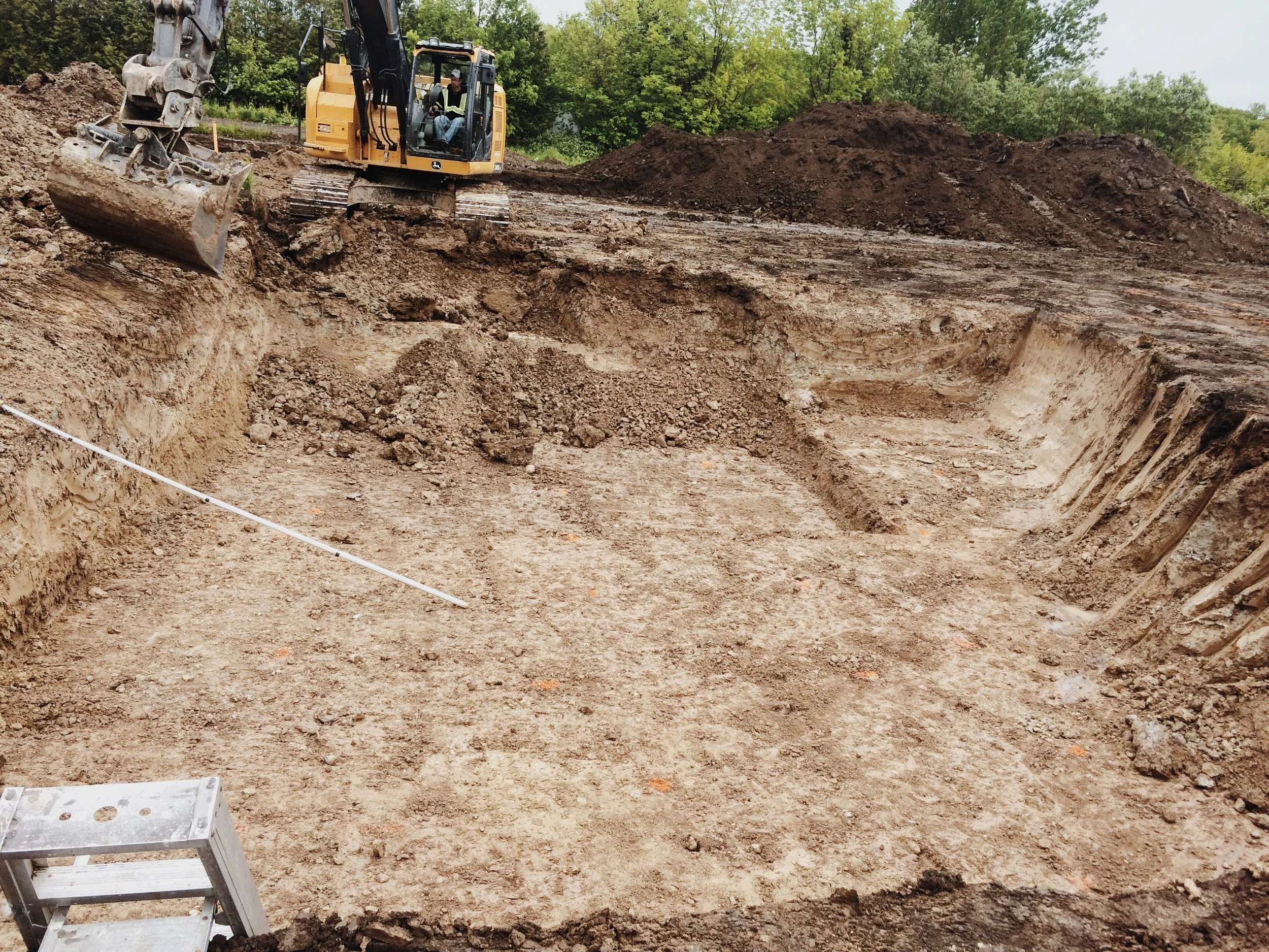 We had a huge pile of logs on our lot because we were basically the dumping grounds for our neighbours who were clearing forest debris (majority of our neighbours are building into conservation land). Once everything was cleared off of our lot, it was time to break ground!