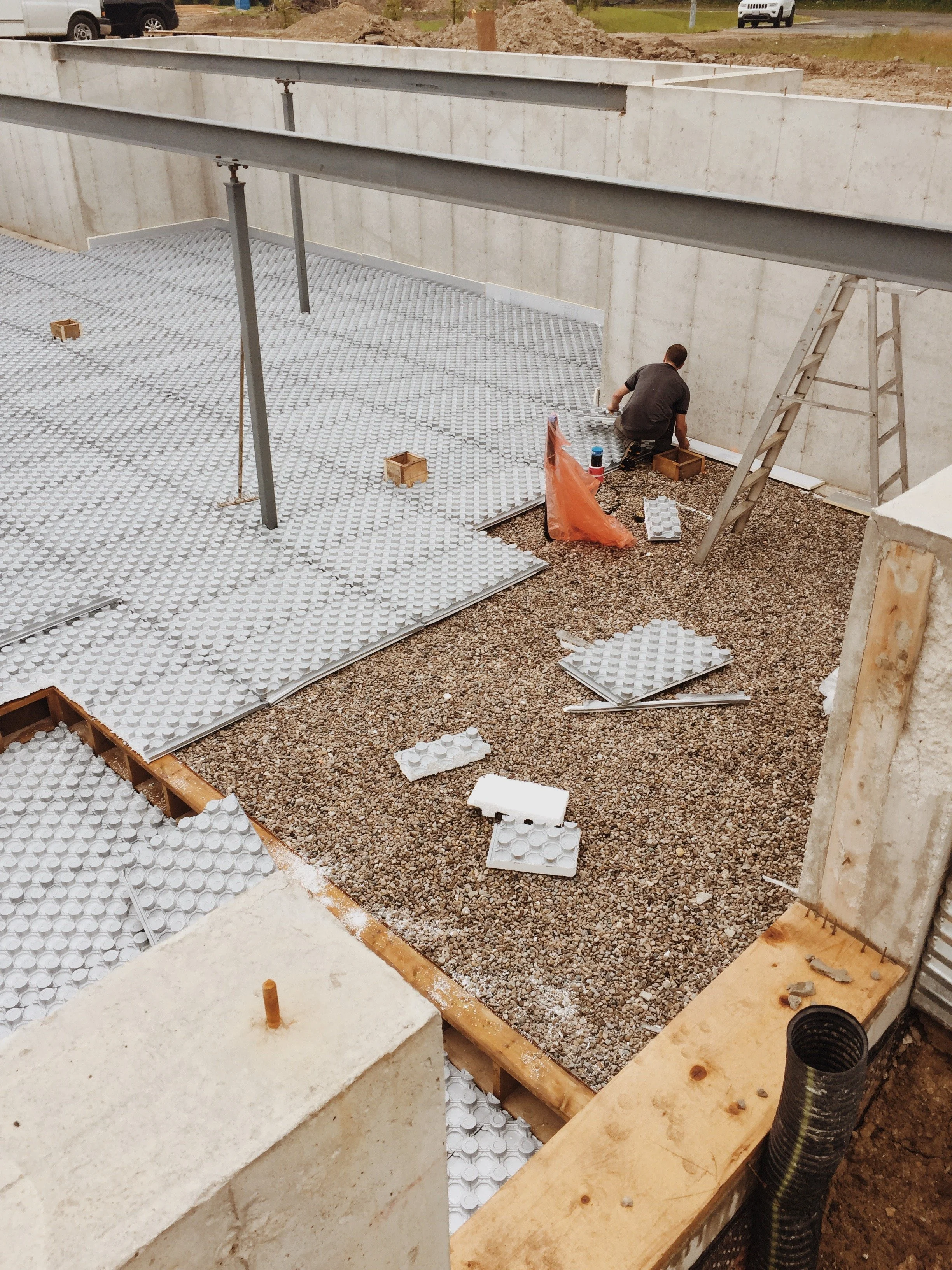 Back in the spring, Brent and I met with a local family owned and operated business, Tri-Mech, which are a leading provider of Geothermal Heating and Cooling, Boilers and Radiant Floor Heating, Sheet Metal, Forced Air Heating and Cooling,Plumbing, and Pressure Cleaning Systems. We instantly felt comfortable working with Tri-Mech because not only do they use great products, they also provided us with information regarding the correct comfort system for our home. This is ideally why we decided to add radiant heating throughout the floor of our basement. Living in South Western Ontario, we all know how cold a Canadian Winter can be. We wanted to be really comfortable in the basement on those cold winter days when the buses are cancelled and we've got nothing better to do than have a lazy movie day. Basements are often the hardest part of your house to heat and forced air can be hard to push down because we all know the old saying "hot air rises". By adding in-floor heating to our basement it will gently warm the surfaces of objects in the room as well as the air itself- this will help provide maximum comfort as well as energy efficiency!
