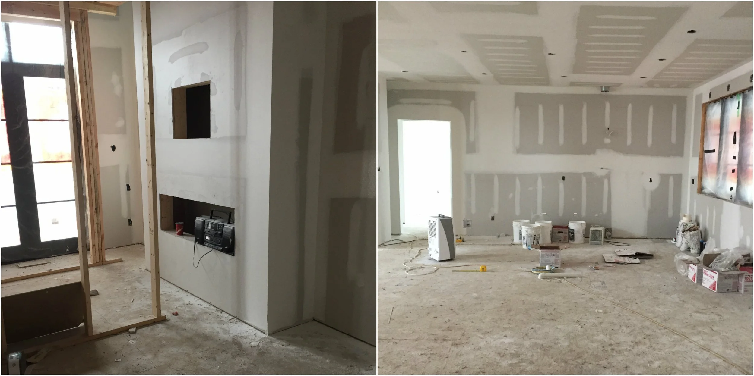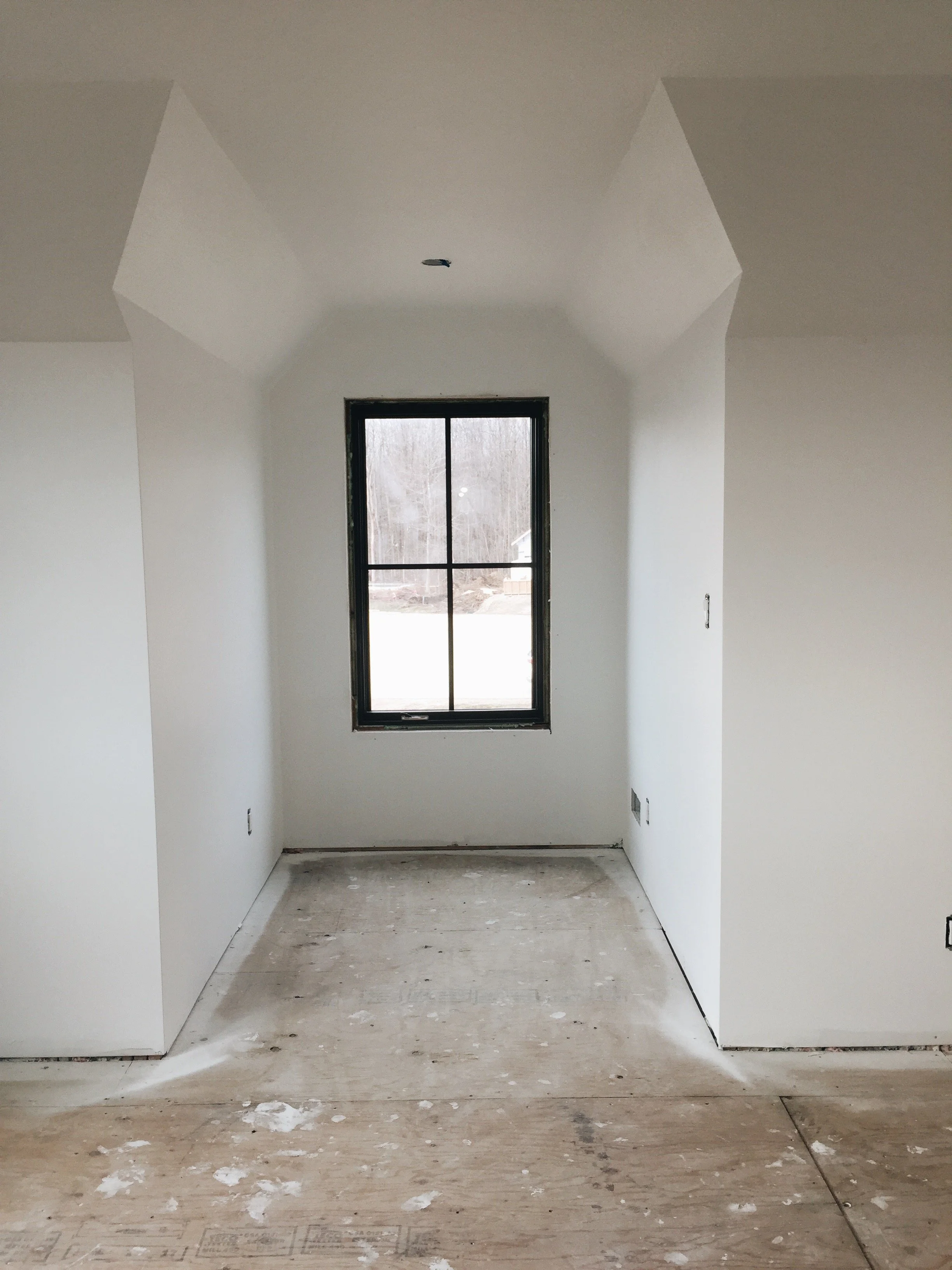 This is our master bedroom (above) looking into the master closet and master bathroom. Gosh, this progress is so exciting but its a little scary since we basically designed this house from the ground up, all the finishes we selected and the placement for everything from light fixtures to receptacles is all on us.
