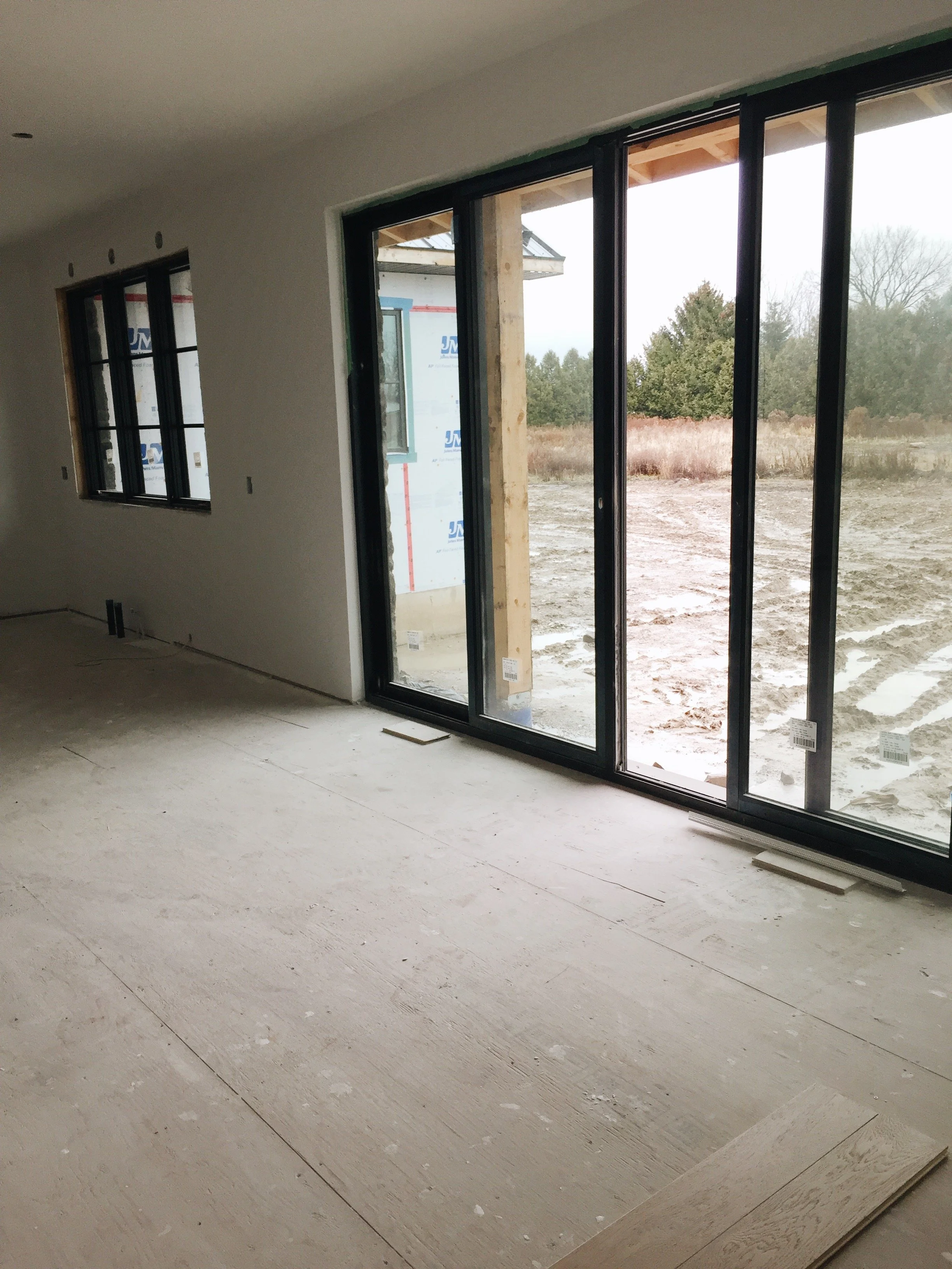 This past Monday, we started installing the engineered hardwood throughout the main space and its starting to feel like a real home. Ahhhh! We are so anxious to get in but at the same time we've learned to just go with the flow and when the house is ready, we'll be ready to live in it :)